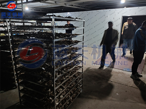 将处理好的山药片放置在上料机上,调整好铺设厚度,上料机上有匀料器可以调整山药铺设厚度。