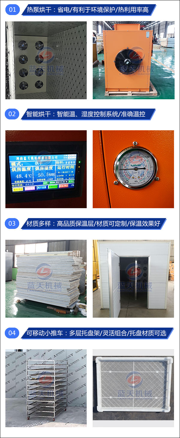 ◎热源除了空气能加热,可采用蒸气、导热油、电或燃煤(油)热风炉配套。